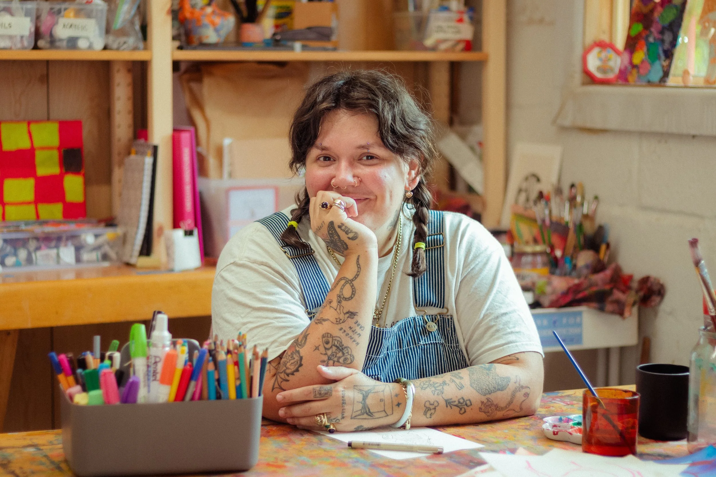 Frances Cannon (they/them) is a lesbian, multidisciplinary artist based in Melbourne/Narrm. They have solid practices in many mediums including illustration, oil painting, jewellery smithing, ceramics and sculpture. Frances' work examines the human form, religion, fairytales, queerness, and memory. Much of their work is political, as it often deals with marginalised identities and bodies, as well as current events. Frances has had many successful solo shows locally and internationally. They have worked with Teen-Vogue, Gucci, Refinery 29, Third Drawer Down, Lucy and Yak, Bonds, and have been published in Vogue, Frankie, Yen, Teen-Vogue, Bustle, HuffPost, Dazed and Confused, SBS Australia, i-D Mag, Rookie and many more. Frances is the co-owner and director of Pink Ember Studio in Coburg.